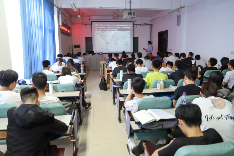 之后,王厚杰向大家讲述了人类探索海洋的历史。他从中国明朝的郑和下西洋说起,讲述了郑和七下西洋的原因以及对于明朝的影响,展现了海洋在对外交流中的重要作用。同时,他指出,由于后期的动乱和清朝的闭关锁国政策,导致了中国科学技术的落后,中国的航海技术从此落后于世界。他还结合世界历史上其他国家依托海洋兴盛的例子,使同学们真真切切地感受到海洋对于一个国家的重要性。