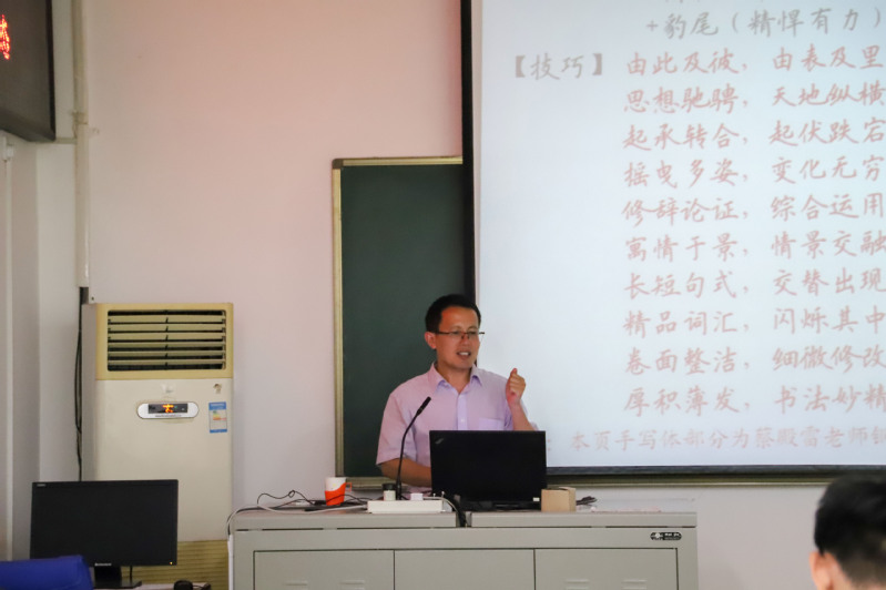 王秀海强调了写作的重要性,并向同学们介绍了快速作文法。他表示,作文首先要仔细审题,不可偏题、离题,而且心中要有一个具体规划,明白自己接下来要做哪些工作。他还强调,作文的开头一定要写好,一个好的开头为整篇文章奠定了基调,为整篇文章打下了基础,好的开篇是成功的一半。他还向大家展示了自创的关于作文写作的三字经,便于同学们理解记忆。