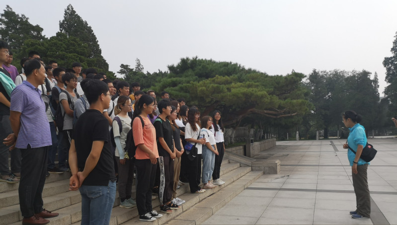 在辽沈战役纪念馆的石碑下,龙海燕老师为同学们介绍了辽沈战役发生的相关历史背景,并且结合实习区区域地质背景讲解了锦州地理位置的重要性及其战略意义。随后2017级勘工班团支书吴晓婷带领同学们重温入团誓词,作为本次参观的开启仪式。