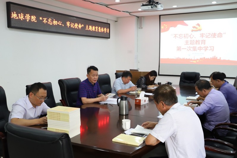 9月24日上午,海洋地球科学学院“不忘初心、牢记使命”主题教育学院领导班子第一次集体学习在地质楼B205举行。按照学院“不忘初心、牢记使命”主题教育实施方案安排,学院领导班子以“谋海济国守初心,走好新时代的高等教育长征路”为主题,集中学习研讨《习近平关于“不忘初心、牢记使命”论述摘编》(以下简称《摘编》)第一部分“中国共产党的初心和使命,就是为中国人民谋幸福,为中华民族谋复兴”,以及习近平在中央党校(国家行政学院)中青年干部培训班开班仪式上的重要讲话。学校第二指导组成员、学院党委理论学习中心组成员参加会议,会议由院党委书记吴军主持。
