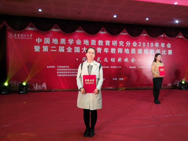 本站讯 10月26日至27日,第二届全国大学青年教师地质课程教学比赛在江西南昌东华理工大学举行,77所地质类院校共139名选手参与了本次比赛,我校海洋地球科学学院副教授曹花花作为学院代表参赛,并喜获三等奖。