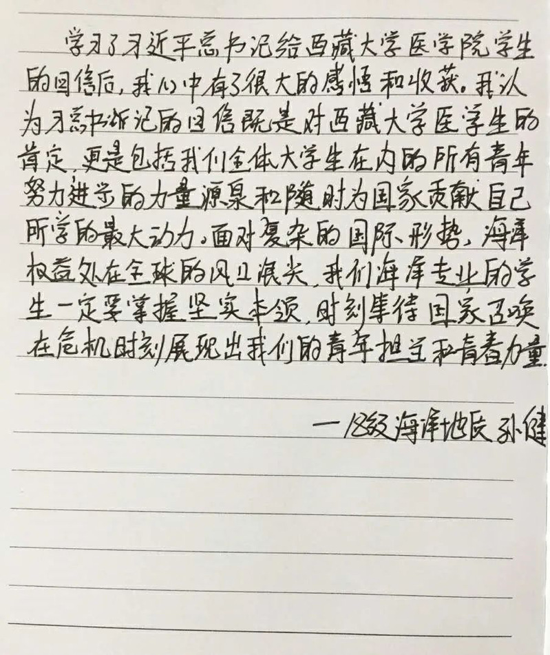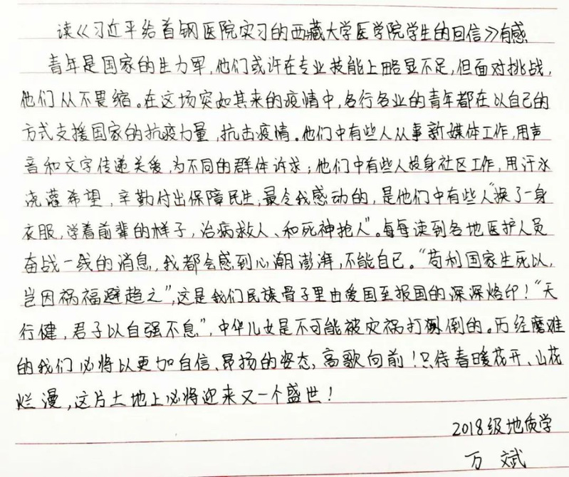很多同学发表了他们看完总书记回信后的感悟。