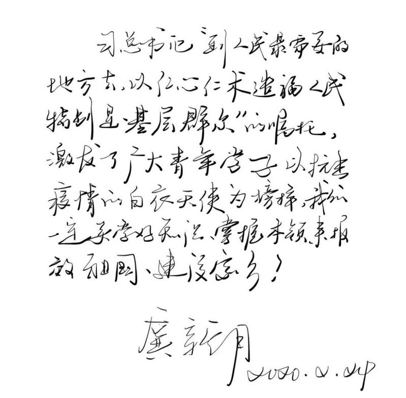 一个时代有一个时代的使命,一个时代有一个时代的召唤。新时代、新征程、新思想、新起点、新方向,习近平总书记在给正在北京大学首钢医院实习的西藏大学医学院学生的回信不仅是对17名医学生提出的期望和鼓励,更是对广大青年学生的期望和鼓励。