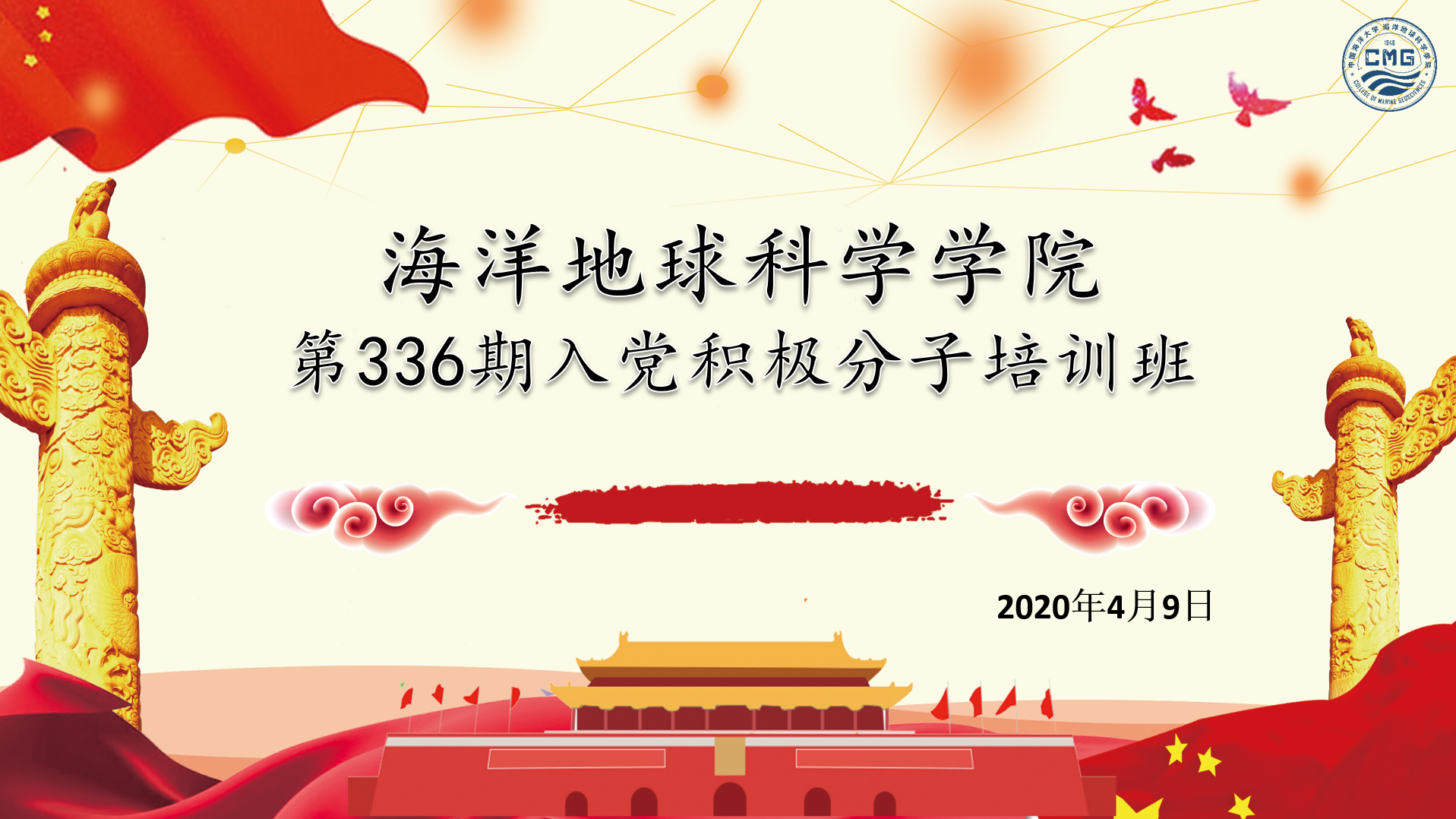 本站讯:4月9日下午,开云电竞网址第336期入党积极分子培训班开班仪式通过腾讯会议在线上举行。海洋地球科学学院党委副书记张殿镇、团委书记张婧、辅导员董立超、王可佳以及96名学员参加了本次开班仪式。仪式由学院党建辅导员郭子悦主持。