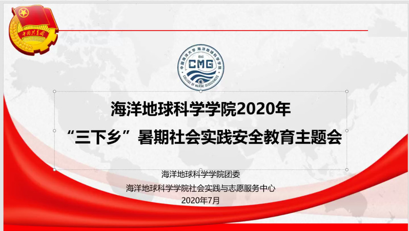 至此,海洋地球科学学院2020年“三下乡”安全主题会议圆满结束。“三下乡”社会实践活动旨在让同学们提高大学生的社会实践能力和思想认识,同时更多的为基层群众服务。本次会议重点强调了“三下乡”调研过程中同学们的安全问题,希望同学们在进行实践活动时牢记人身财产安全,安全顺利地完成实践