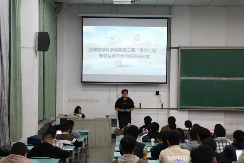 本站讯 11月6日下午,海洋地球科学学院第三期“青马工程”暨学生骨干培训班开班仪式于教学楼4102举行。仪式由研究生会主席毛居东主持,海洋地球科学学院团委书记张婧出席本次仪式。