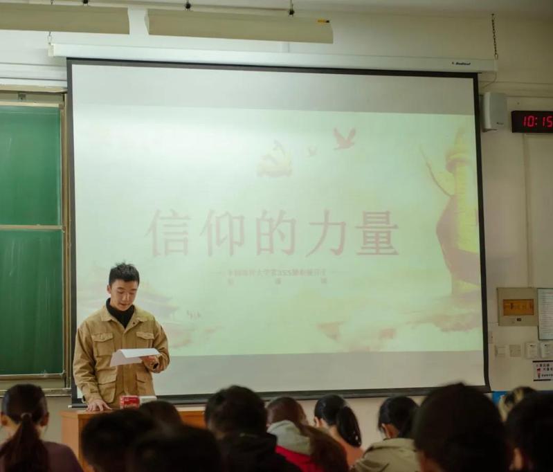 本站讯 11月14日上午,由海洋地球科学学院和材料与工程学院联合开展的第355期入党积极分子培训班——“信仰的力量”主题演讲于教学楼4403举办,培训班全体学员参加,此次演讲以小组为单位依次向同学们进行展示与分享。