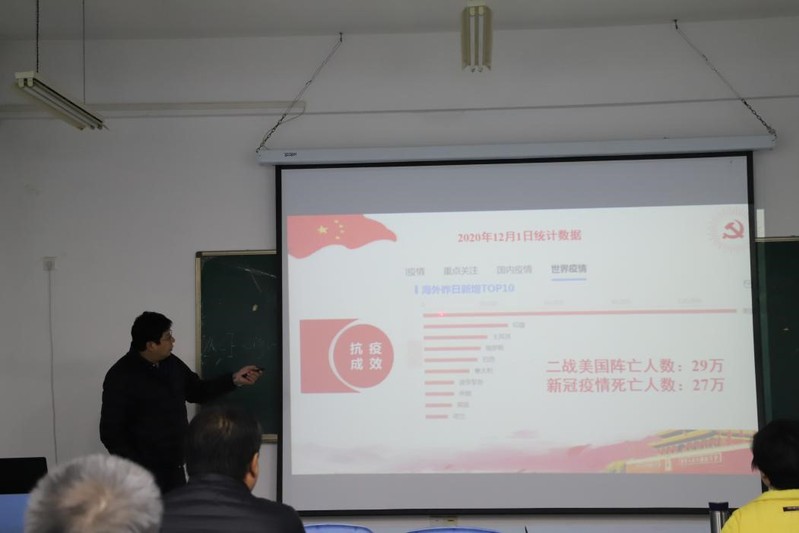 本站讯 12月3日下午,海洋地球科学学院院长王厚杰在地质楼A414以“从新冠疫情防控看中国特色社会主义制度的优越性”为题主讲党课,河口海岸带研究所党支部全体成员参加学习。