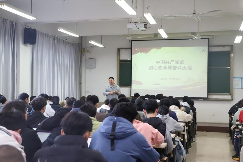 之后,王厚杰院长以史为纲、以史为鉴,从共产党成立的历史背景出发,以重大历史事件为脉络,结合大量生动的历史资料和人物事例,与同学们一起重温了中国共产党自诞生以来所走过的艰苦卓绝、波澜壮阔的伟大奋斗历程以及一代代优秀共产党人在战争年代为争取民族独立、人民解放而英勇奋斗、敢于牺牲的壮烈事迹,总结了中国共产党不负历史选择,赢得人民支持,领导中国革命、建设取得的丰功伟绩,深刻阐述了中国共产党为人民谋幸福、为中华民族谋复兴的初心使命。
