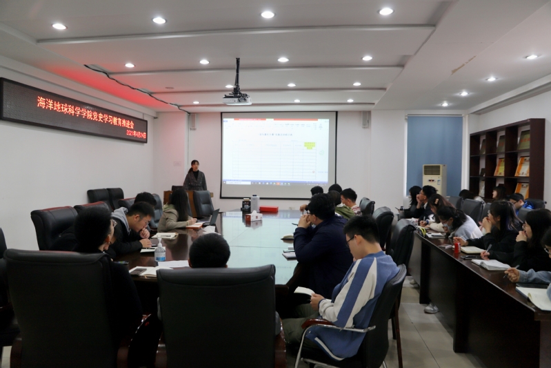 4月24日,海洋地球科学学院在地质楼B205召开“学党史,悟思想,办实事,开新局”党史学习教育推进会。会议由学院团委书记张婧主持,全院学生党支书、团支书参加会议。