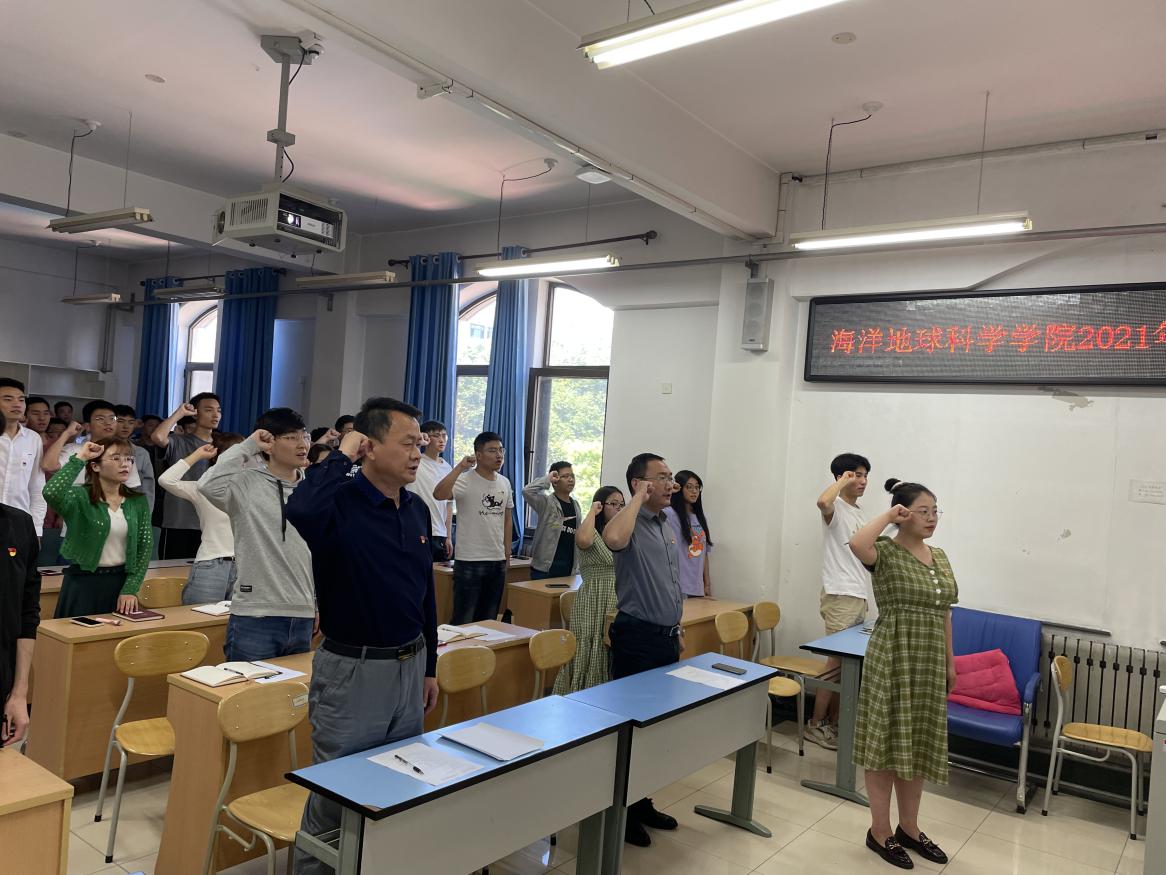 为引导毕业生党员充分发挥先锋模范作用,牢记初心使命,进一步营造“文明离校树先锋,服务母校我先行”的良好氛围,6月4日上午,海洋地球科学学院开展“不忘初心、牢记使命”毕业生党员誓师大会。海洋地球科学学院党委书记吴军、党委副书记张殿镇出席会议并讲话。
