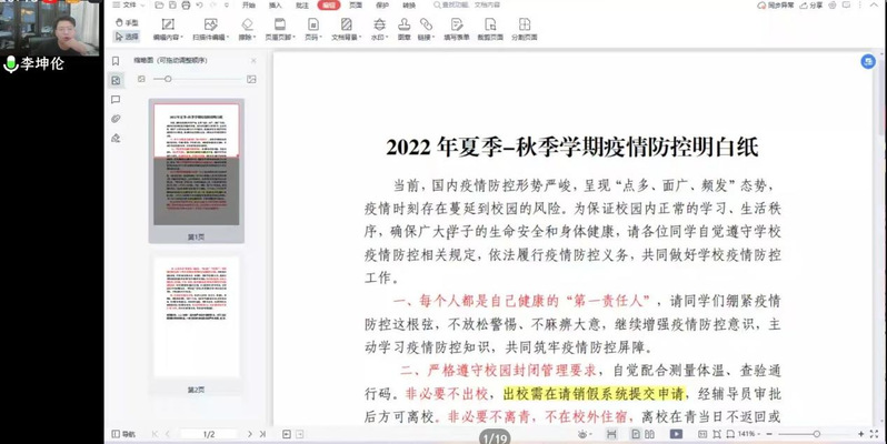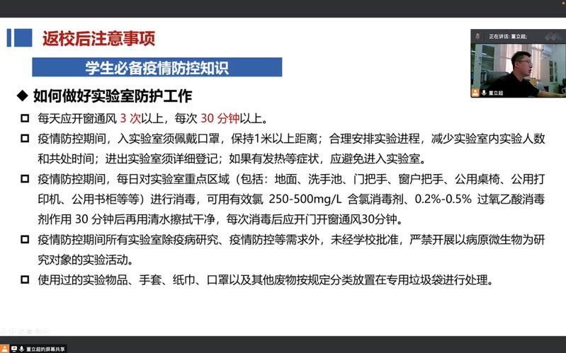 新学期开学时,学校人流量大,人员密集,疫情传播风险高,为了广大同学的人身安全,各位辅导员详细结合《2022年夏季-秋季学期疫情防控明白纸》为大家解读了最新的疫情防控要求,再次提醒叮嘱同学们要严格遵守学校疫情防控相关规定,保持良好的生活习惯,筑牢疫情防线,坚持每日上报和一周两检,做遵守规矩、服从管理的海大人。