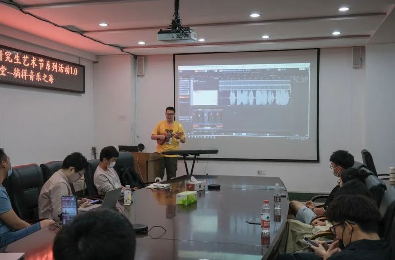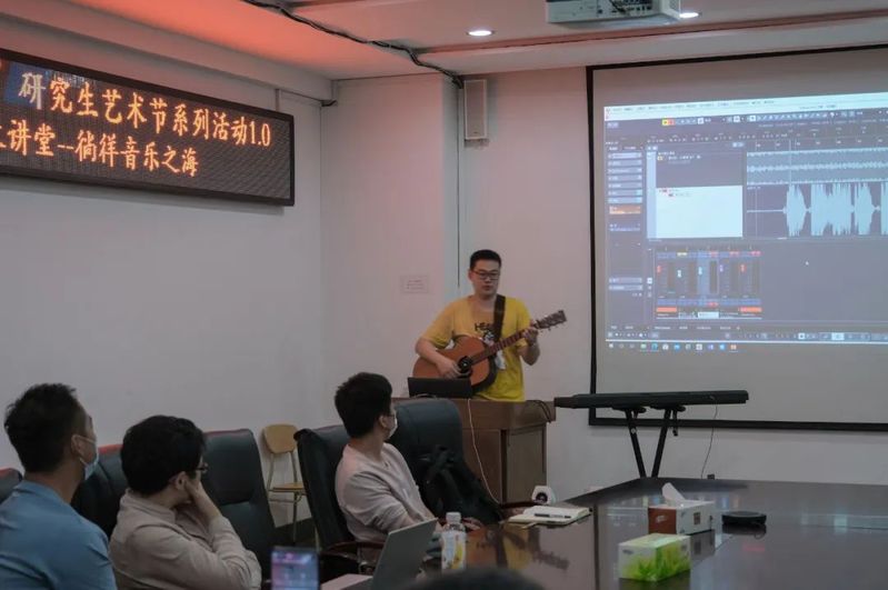 本次活动的主题为“徜徉音乐之海”,开云电竞网址研究生年度人物、自由音乐创作人、海洋地球科学学院研究生会主席舒鹏程担任主讲嘉宾,经济学院研究生会主席周浩然主持了本次活动。