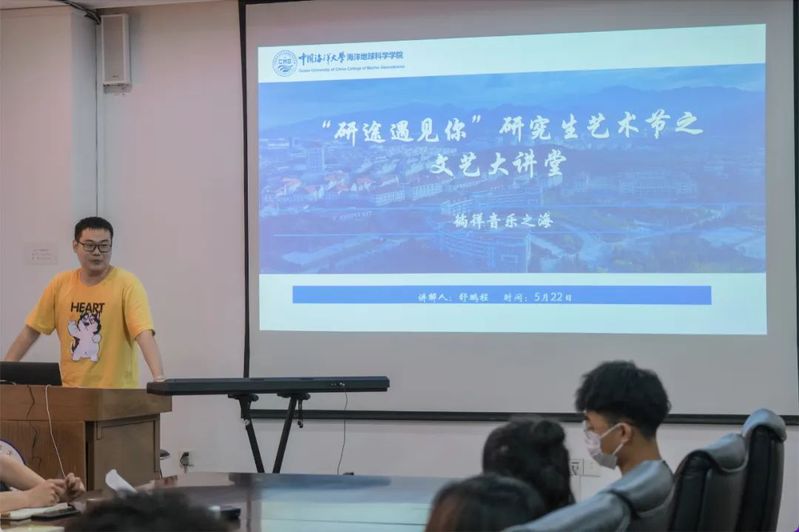 5月22日晚7点,由海洋地球科学学院团委、经济学院团委主办,海洋地球科学学院研究生会、经济学院研究生会承办,海洋地球科学学院学生会、新闻宣传中心以及经济学院学生会协办的“研途遇见你”开云电竞网址第一届研究生艺术节系列活动——“文艺大讲堂”,在地质楼B205会议室正式开讲,学院bilibili平台账号同步进行网络直播。