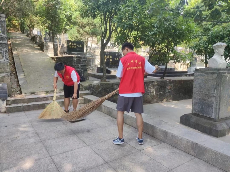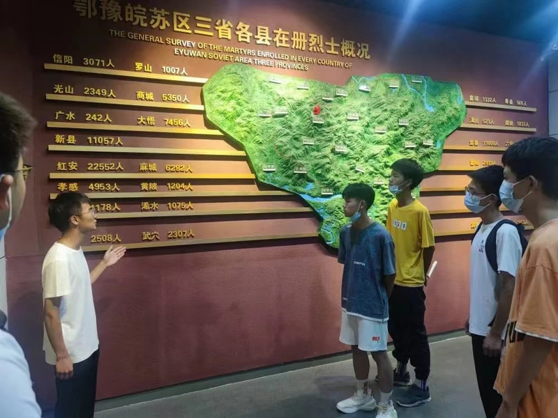 实践队在学习新县老区红色革命历史的基础上,集中梳理研究老区红色资源,于当日走访鄂豫皖苏区首府烈士陵园以及鄂豫皖革命根据地首府旧址纪念馆等重要红色地标,集中学习大别山红色革命精神,开展园内指引游客、祭扫革命烈士陵园等志愿服务活动,在志愿服务的过程中深化对于老区革命精神的认识。
