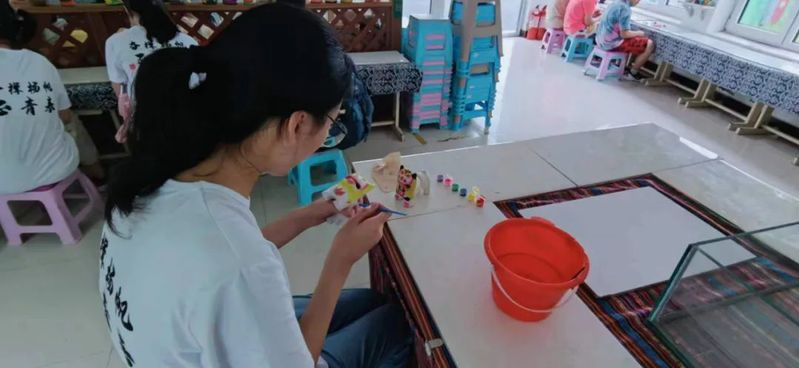 7月16日上午,实践队前往胶东非物质文化遗产博物馆内进行参观和学习。博物馆内收藏、展示非遗、民俗藏品2000多件,展示国家级、省级、青岛市级、即墨市级非遗项目60多个。此外,博物馆突出DIY特色,非遗传承人现场教学、活态展示,常年开展传承教育,开发出传统面食、酿酒、木版年画、绣花、风筝、魔术、柳腔、剪纸、传统游戏等50多个体验项目,100多种文创产品,适合青少年进行传统文化体验、教育。