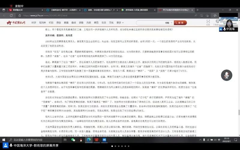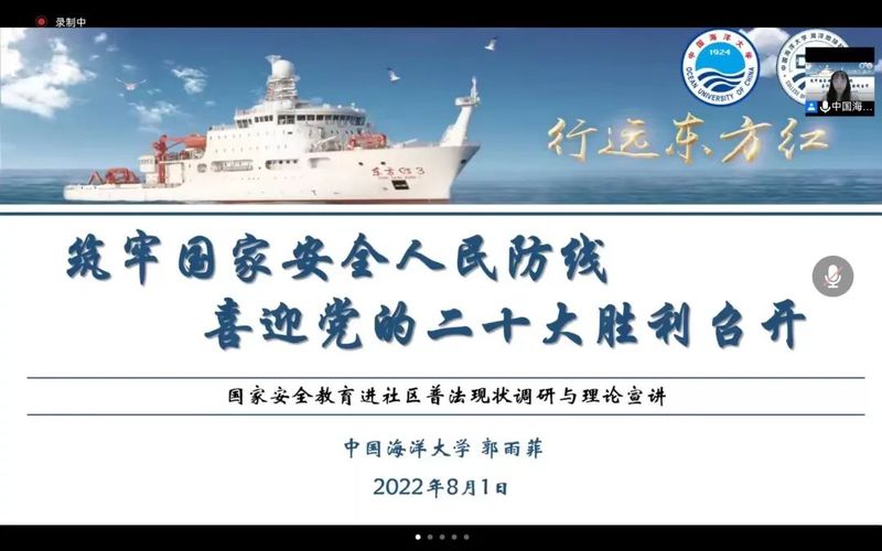 继7月31日“筑牢国家安全人民防线,喜迎党的二十大胜利召开”国家安全教育进社区普法现状调研与理论宣讲团面向山东省烟台市上刘家居委会国家安全教育进社区理论线上宣讲活动取得良好效果与反馈后,宣讲团又以腾讯会议的形式于8月1日走进山西省太原市新友谊小区开展国家安全教育进社区理论宣讲活动。本次宣讲由2021级地球信息科学与技术专业郭雨菲主讲。