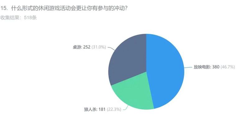 同时心理健康活动的内容也值得关注,调研中发现,相比于桌游、狼人杀等当下热门休闲游戏,将近一半的人更喜欢放映电影,在接下来的工作中,这也将成为一个侧重点,同时也需要完善工作计划和相关的条例。