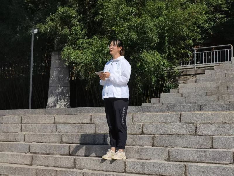 活动伊始,同学们怀着崇高的敬意一路走到革命烈士纪念馆之前,集结完毕后,全体列队。党委副书记吴瑕对同学们讲话,她指出,作为新时代青年学子,在实现中华民族伟大复兴和祖国统一的道路上,同学们必须铭记抗战历史,担负时代责任,学习先辈们“为有牺牲多壮志”的伟大革命精神,将红色精神融入到学习实践中,激励自我,树立远大理想,担负时代责任。