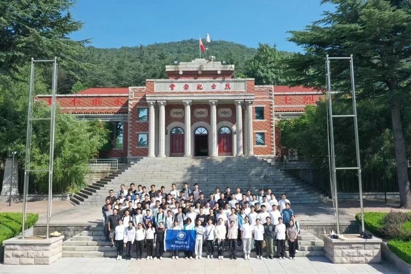 本站讯 为纪念抗日战争77周年、迎接党的二十大胜利召开,大力弘扬新时期爱国主义精神,进一步引导教育青年学生坚定理想信念、厚植爱国情怀、强化责任担当、成就伟大梦想,8月26日,海洋地球科学学院党委副书记吴瑕,副院长韩宗珠、教授毕乃双、副教授徐秀刚、裴建新、邢军辉、李德勇带领桃村实习队全体同学赴山东省胶州革命烈士纪念馆,开展“行走的主题团日”爱国主义教育活动。