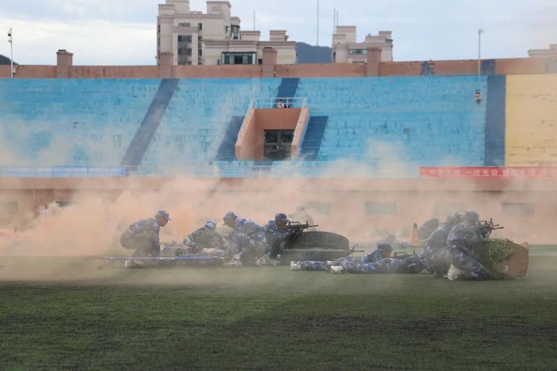 随后,军训教官们集合