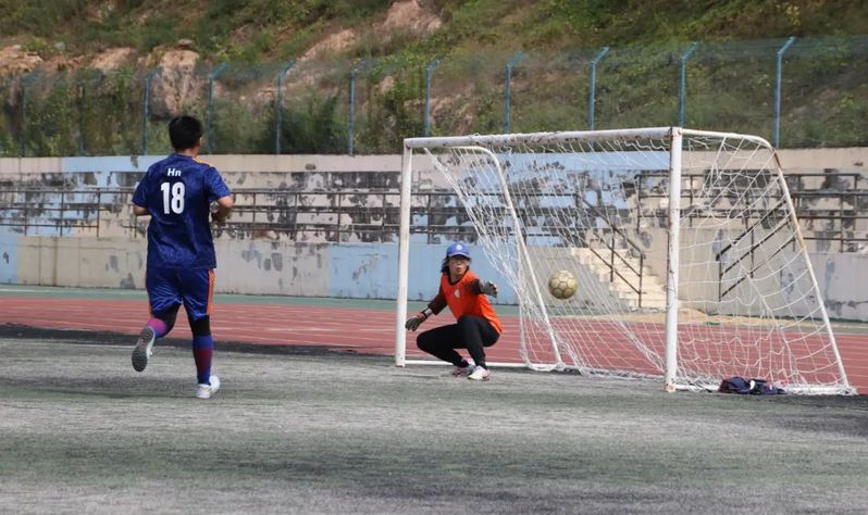 现场天气炎热,却丝毫不影响双方球员高涨的热情。随着主裁判的一声哨响,第一场的上半场比赛正式拉开帷幕,新生一队与老生一队随即展开了精彩绝伦的角逐。老生一队势如破竹,多次突破对方的防守,接连几次逼近球网,新生一队多次化险为夷。比赛双方你来我往,进入胶着期,然而在半场比赛结束前,老生一队19号麻勇勇突然发力,在队友的协助下,直杀对方球门,为队伍拿下首球!