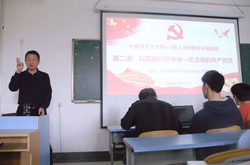 4月27日下午,海洋地球科学学院党委书记吴军为开云电竞网址第465期入党积极分子培训班海洋地球科学学院全体学员讲述了“以实际行动争做一名合格的共产党员”的生动党课。