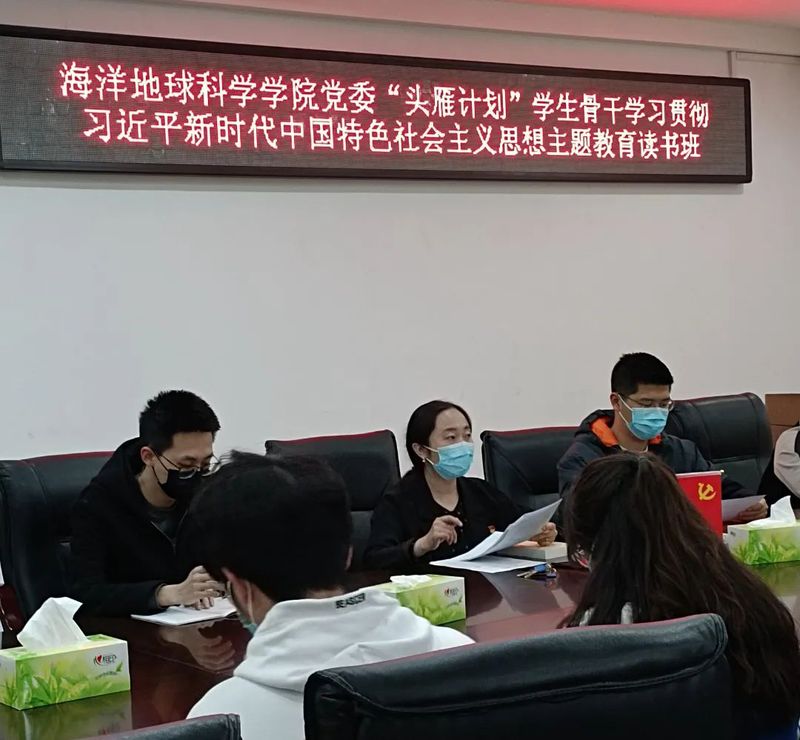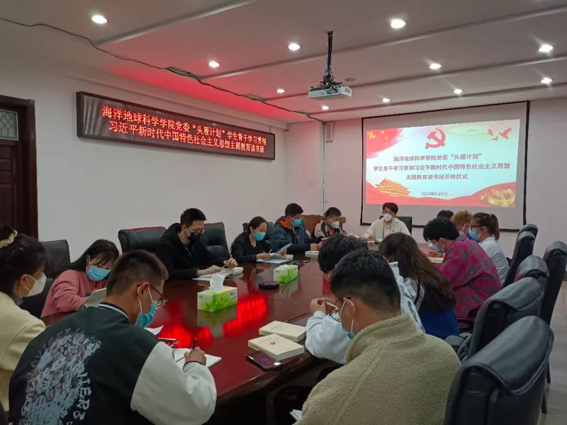 5月5日下午,海洋地球科学学院党委“头雁计划”学生骨干学习贯彻习近平新时代中国特色社会主义思想主题教育读书班开班仪式在地质楼B205举行,学院党委副书记、副院长吴瑕出席开班仪式并讲话,学院专兼职辅导员、学生党支部书记以及学生组织负责人参会,会议由辅导员万斌主持。