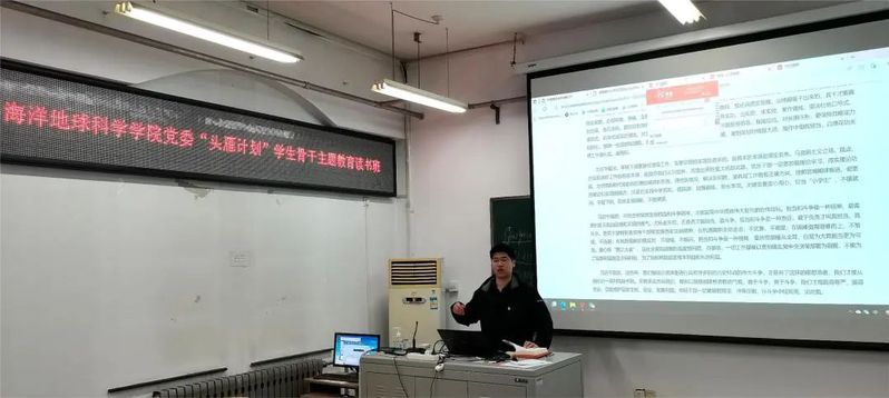 5月16日,海洋地球科学学院党委“头雁计划”学生干学习贯彻习近平新时代中国特色社会主义思想主题教育读书班第三单元集体学习在地质楼B206顺利举行,学院党委副书记、副院长吴瑕、辅导员董立超、兼职辅导员陈泽纪、钟祯祥,学生党支部书记以及学生组织负责人参会,会议由辅导员万斌主持。