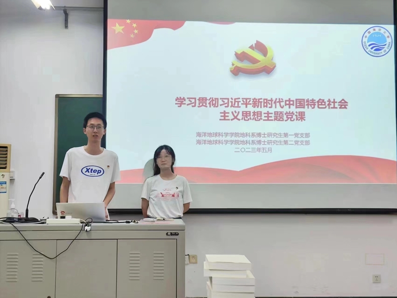 2023年5月23日,地科系博士研究生第一党支部(以下简称一支部)联合地科系博士研究生第二党支部(以下简称二支部)召开会议,集中开展学习贯彻习近平新时代中国特色社会主义思想主题教育党课。本次党课以习近平总书记讲话原文为学习材料,目标是使支部党员同志明确这次主题教育的重大意义及目标要求。