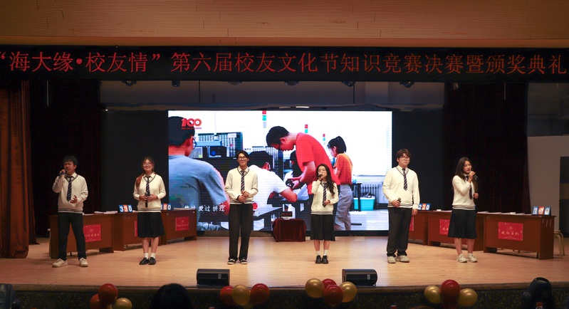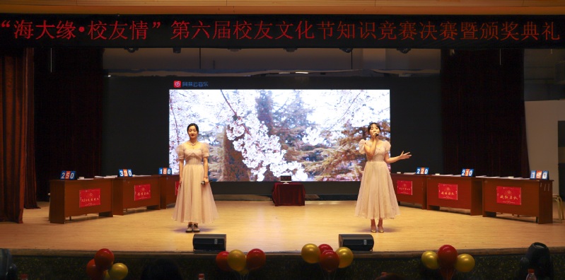 比赛间隙,一段段回顾视频展示着本次校友文化节征集的优秀文化作品,校友代表登台合唱《青春的模样》诠释了青春的活力,喜迎海大百年校庆,我们应立足新起点,奋进新征程,弘扬榜样精神,凝聚青春力量。伴随着校园原创歌曲《樱海》浪漫悠扬,图书馆天台的读书声犹然在耳,樱花大道旁的身影青春昂扬,看不倦校园的风物,忆不完似水的流年,莘莘学子对母校的眷恋和热爱氤氲全场。