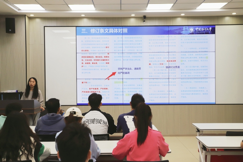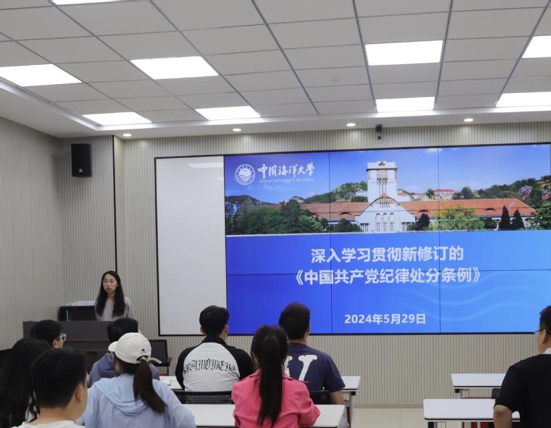 本站讯 为积极响应党中央的号召,深入贯彻习近平总书记关于党纪学习教育的重要论述和指示精神,5月29日晚,海洋地球科学学院党委在地质楼A414举办第二期学生骨干党纪学习教育读书班,学院党委副书记、副院长吴瑕作为主讲人,领读并讲解《中国共产党纪律处分条例》(以下简称《条例》)。学院各学生组织负责人参加学习。