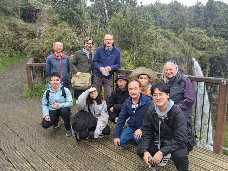 新西兰地处太平洋板块与印度-澳大利亚板块交界处,独特的地理位置和板块运动造就了丰富多样的地质景观,为海洋地质学提供了得天独厚的研究条件。期间,团队考察了新西兰北岛地区的多处地质景观,包括火山、盆地、溶洞、瀑布、断裂、海滩、湖泊等,对当地的构造环境、岩石性质、地貌特征、地热资源、河口海岸等进行实地调研。