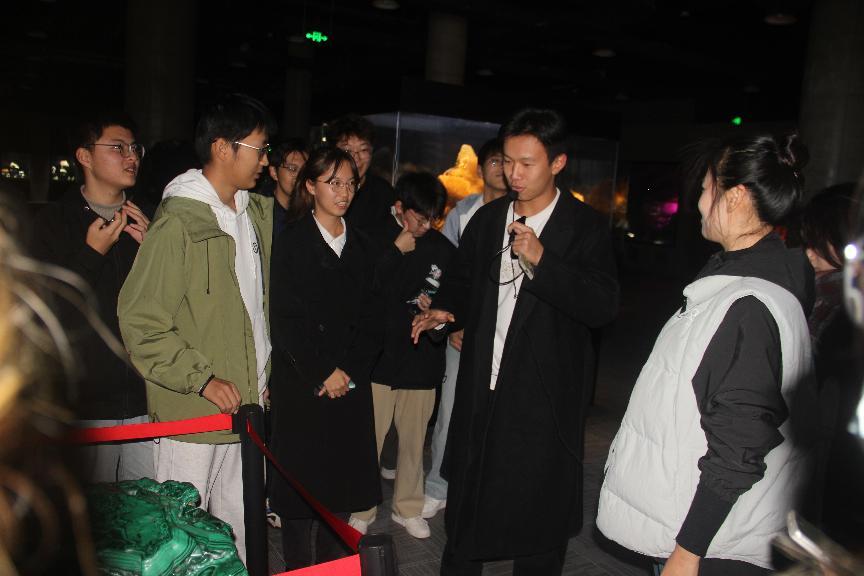 此外,2024级地球信息科学与技术崔凤轩、吕启忠、桑雨锋三位同学也事先通过多种渠道做足功课,在馆内化身“小小讲解员”,从外观形态、内部构造、相关逸闻趣事等多个维度向同学们科普了几种常见矿物。这种寓教于乐的形式让专业知识以一种更加通俗亲切的方式融入同学们的记忆中。