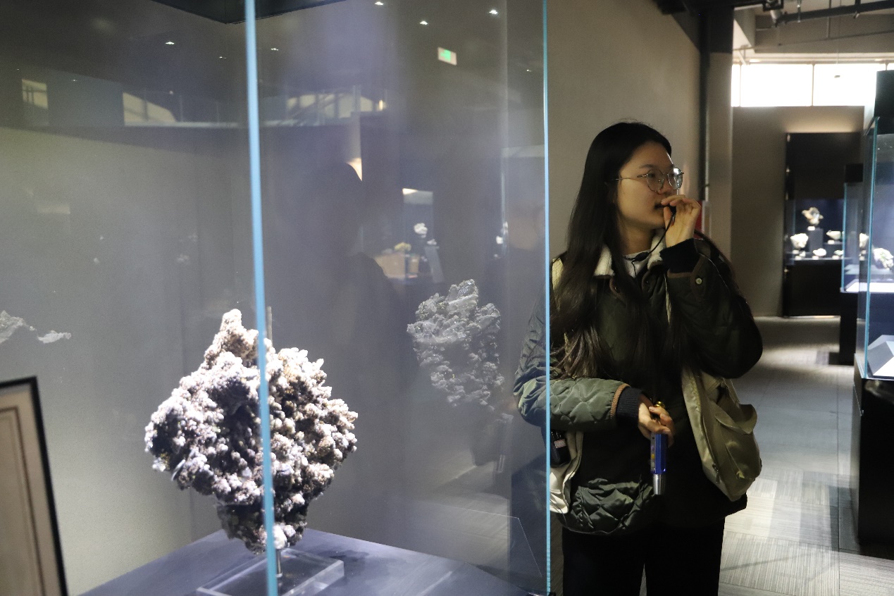 跟随讲解员,同学们满怀期待地踏入展厅。映入眼帘的便是那琳琅满目的各色矿石,或热烈似火的赤红色,或深邃宁静的幽蓝色,或清新淡雅的翠绿色,每一抹色调都仿佛在诉说着一段久远而神秘的地质故事。这些矿石毫无保留地展现着大自然那鬼斧神工的创造力,让同学们沉浸其中。