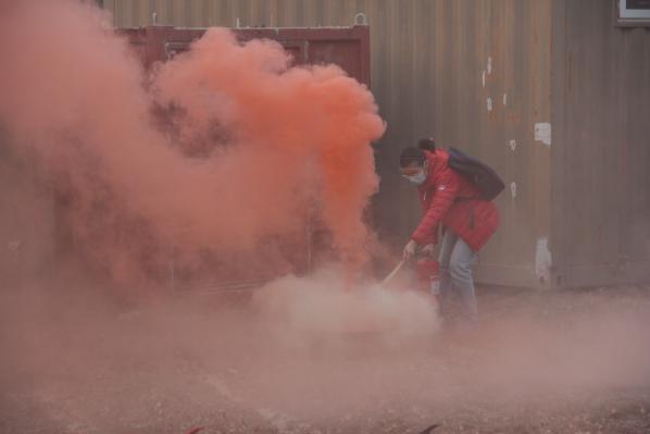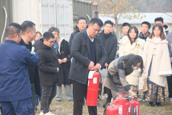 大会结束后,参会人员前往海棠路西侧工程学院门前空地进行消防演练,保卫处消防科刘宝罡、张氏栋老师为师生宣讲并演示灭火器、消防自救呼吸器等设备的使用,对现场师生进行了实操训练。