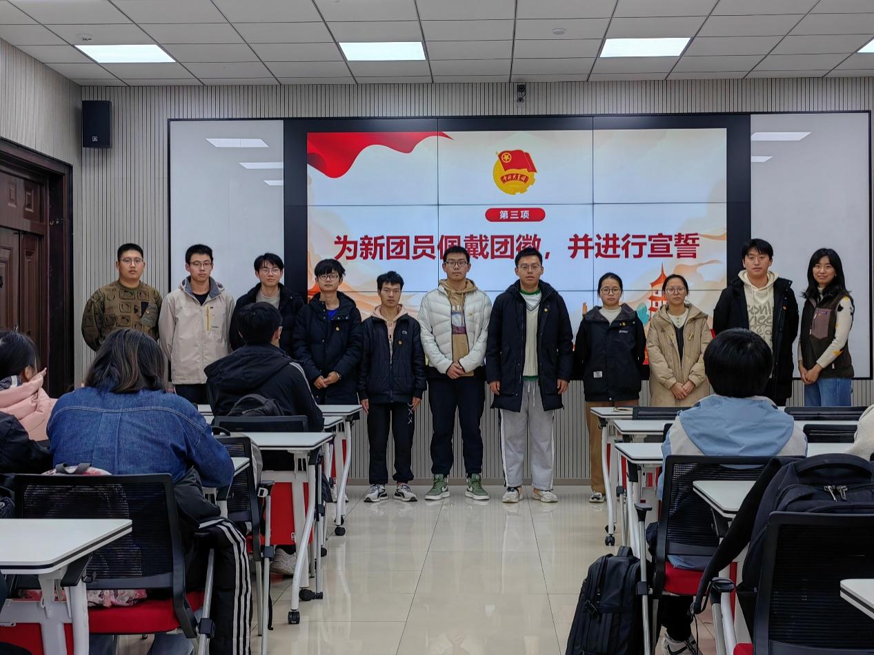 随后,在张婧的带领下,全体参会成员与会人员起立进行入团宣誓。在庄严的入团誓词中,新团员们充分意识到加入共青团的意义,同时也认识明确了到作为共青团员应当具有的责任感和使命感。
