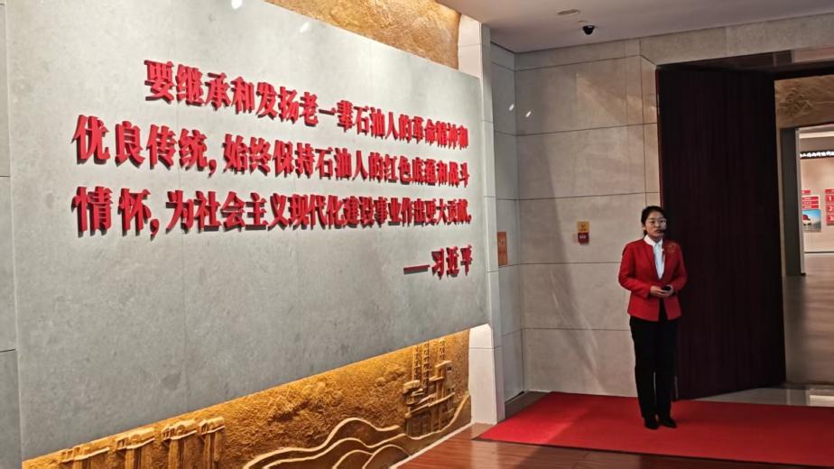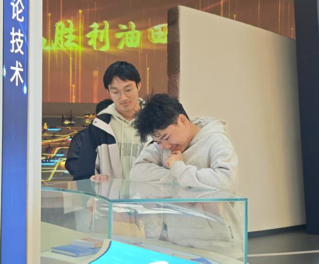 在讲解员引导下,参与师生依次参观了“历史不能忘记”“我为祖国献石油”“从胜利走向胜利”三大主题展区。通过历史实物、影像资料及技术模型,系统回顾了胜利油田从华八井喷涌出的第一股工业油流,到攻克“地质大观园”的复杂断块油田开发技术;从“铁算盘”严细认真的传统作风,到“页岩油革命”的科技突破,再到吃“碳”又吐“油”二氧化碳捕集、利用与封存技术应用的奋斗历程,深刻感悟了“爱国、创业、创新、开放”的胜利人优良传统。