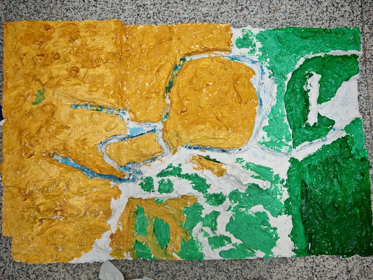 活动结束后,同学们发出了不同的感慨。2024级地球信息科学与技术班范人继同学说到:“尽管说,我们都没有丰富的手工经验,但是我们用时间来弥补。一沟一壑,我们用小刀慢慢雕琢,用石膏慢慢涂改。一黄一绿,我们用调色盘细心调色,希望能更加准确的展现黄河流域部分的全貌。黄河历经时间的沧桑,而我在制作中慢慢体悟。”
