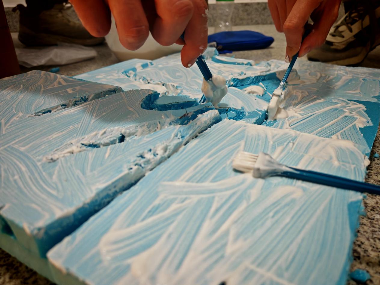 参与活动同学正在雕刻河谷