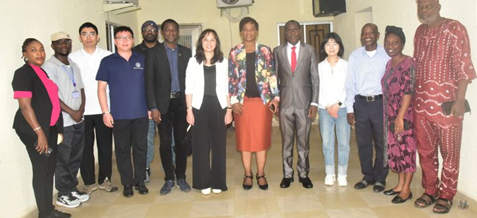 图1 中方项目组与尼日利亚阿库雷联邦理工大学校长Prof Adenike Temidayo Oladiji(左八)等进行交流