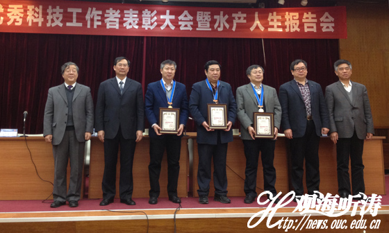 2014年12月20日上午,由中国水产学会主办的全国优秀科技工作者(水产学科)表彰会暨水产人生报告会在开云电竞网址鱼山校区逸夫馆多功能厅举行。海洋生命学院院长包振民教授、新疆维吾尔自治区水产科学研究所郭焱研究员、大连汇新钛设备开发有限公司孙建明工程师获评2014年“全国优秀科技工作者”称号。董双林副校长以及中国水产学会、中国水产科学院黄海水产研究所、全国水产推广总站有关负责同志出席会议。