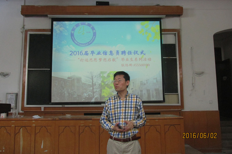 接下来,于书记就信息员的职责展开了讲话,并充分肯定了信息员对于学院建设及学生工作开展的重要性。他提到,信息员是毕业生与母院之间进行联系的桥梁和纽带,信息员不仅可以对各毕业生的就业信息进行收集与反馈,还可以及时传达毕业生对于学院建设的宝贵意见,并将学院的指导性建议传达给每一位毕业生,他强调各信息员要充分发挥这一桥梁作用,积极做好毕业生与学院间的双向交流工作,要通过建立QQ群等方式将毕业生与学院紧紧地联系在一起。于书记希望各信息员以扎实细致、认真负责的工作态度,为海洋生命学院的人才培养工作尽一份力。接下来前任信息员与大家交流了在工作过程中感受与经验,来自2014级生物工程专业的硕士研究生胡梦珠谈到,在进行信息调查与收集工作时要积极主动,在做好信息统计工作的同时还要与同学间保持良好的联系与沟通。