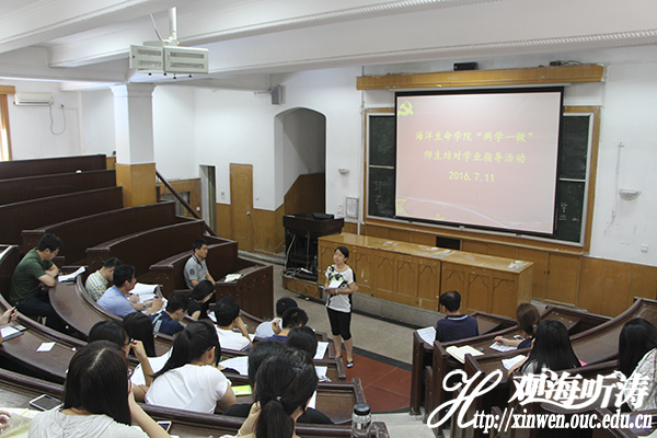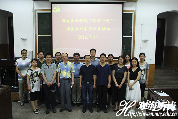 7月11日中午,海洋生命学院“两学一做”师生结对帮扶指导第二批见面会在鱼山校区科学馆顺利进行。学院党委副书记于杰出席活动并讲话。学院11名教工党员、学院团委书记曹少鹏、学院团委副书记李靓和伍玥琪以及学院44名15级本科生参加本次活动。