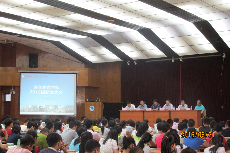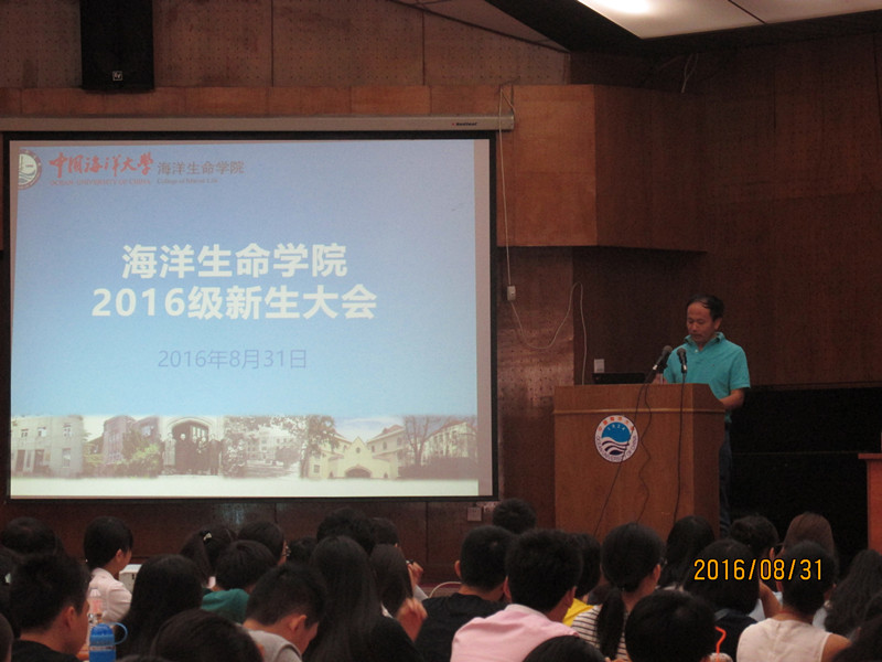 大会伴随着庄严的国歌声拉开了帷幕。首先,初建松书记代表学院对新生们进入拥有86余载办学历史的海洋生命学院表达了热烈的祝贺,他以一个过来人的身份对新生们提出了建议:初书记指出,大学本科首先需要的就是学习方法的调整,研究生同学同样也需要具备良好的学风与校风。从进入大学的第一天起,同学们就要认真学习,不仅要学习本专业的知识,还要学习其他专业的知识以及人文科学社会方面的知识。同时,初书记还建议同学们多阅读古典、经典的书籍,来拓展自己的视野。其次,初书记建议新同学们主动融入集体,学会团队协作,自觉地融入宿舍、班级、党团支部以及实验室研究团队,在与团队合作的同时,增加彼此交流的机会,共同实现人生理想。