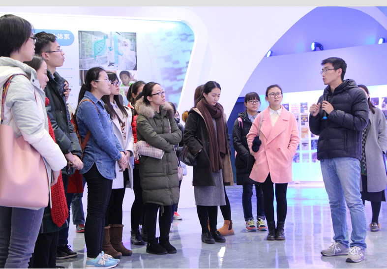 第二站抵达青岛华大基因研究院。研究院高级项目经理王志卫热情接待了我院师生并介绍了基因展厅。首先,王经理向同学们展示了华大基因的科学发展历程以及取得的标志性科研成果;随后,他介绍了华大基因在多项具有国际先进水平的基因组科研工作如人类基因组计划(中国部分)中所做出的巨大贡献;最后,他特别强调,华大基因在实现科研创新的同时,也注重社会责任,真正做到科技惠民。
