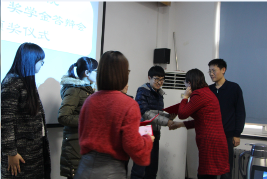 首先由院团委书记曹少鹏老师简要介绍了本次奖学金答辩的基本情况。随后白玉、刘畅、杨松等七名申请同学进行答辩。他们分别就思想方面、科研学习方面、社会实践、日常生活以及家庭情况一一进行介绍。在场评委对答辩的同学进行评审之后宣布获奖名单,他们分别是:白玉,刘畅,杨松,郭佳佳。在此期间,播放了往届获奖者视频,通过视频我们了解到“秀佰锐”奖学金不仅帮助获奖同学渡过了难关,并助力他们在科研的道路上越走越远,其中一位同学已在国外继续深造。