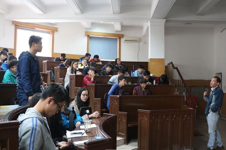 之后,施威扬教授简单介绍了现代生物学发展的历史和领域。他展示了寒武纪最古老的海洋生态群落图、云南澄江化石群图、果蝇模式生物图等,并介绍了进化生物学、发育生物学和分子人类学,使同学们深入理解了现代生物学。