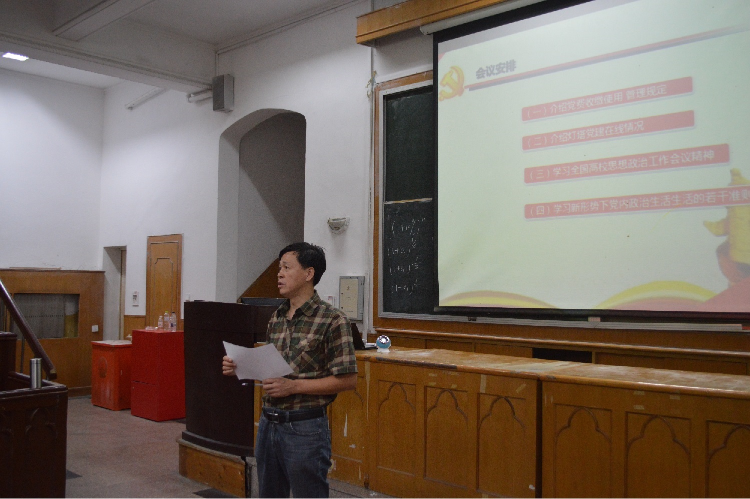 首先,由曹少鹏介绍学校近期党费收缴使用管理规定修改的情况,并就接下来党费收缴工作做出布置。接着,就灯塔—党建在线系统使用向党员做出说明,说明了党支部接下来的相关工作记录要注意上传系统,要利用好系统,发挥好系统的作用。