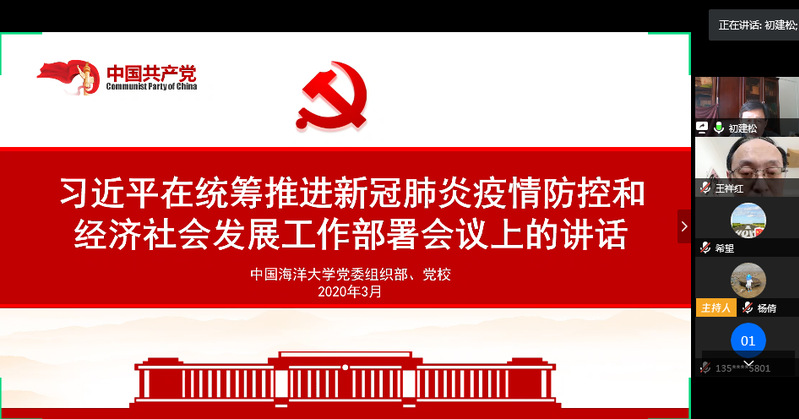 3月30日,海洋生命学院党委理论学习中心组以线上视频的形式召开会议。全体成员认真学习习近平总书记在统筹推进新冠肺炎疫情防控和经济社会发展工作部署会议上的讲话,并对中办印发《党委(党组)落实全面从严治党主体责任规定》进行了集体研讨学习。会议由学院党委书记初建松主持,中国工程院院士、海洋生命学院院长包振民等党政班子成员、党委委员、教职工党支部书记参加了线上学习。